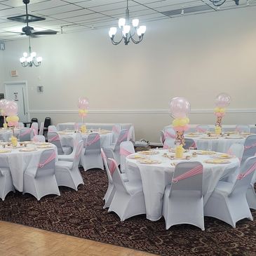 Price includes a bartender, a fully stocked bar, kitchen use, tables, chairs, and 1.5 hours of setup time before the scheduled event.